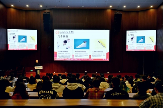 冯弋江以政府工作报告中关于经济、就业、民生方面的数量指标阐释当前经济形势及未来就业趋势,详细解读了就业优先政策。他指出,随着人工智能的快速发展和产业结构的更新迭代,经济数字化转型对高素质、高技能人才需求不断加大,促进了新就业岗位的创造,同时也削减了一些传统行业岗位。他强调要提前做好职业生涯规划,紧跟行业形势,转变就业观念,努力由被动就业向主动就业转变;不仅要具备扎实的专业知识和技能,还需提高自身实习实践经验,要结合市场需求取得其他相应的职业技能证书来提升核心竞争力,以适应未来职场的挑战。最后他鼓励大家要掌握科学的学习方法,具备高效的学习能力,不断更新知识储备,适应快速发展的社会需求。