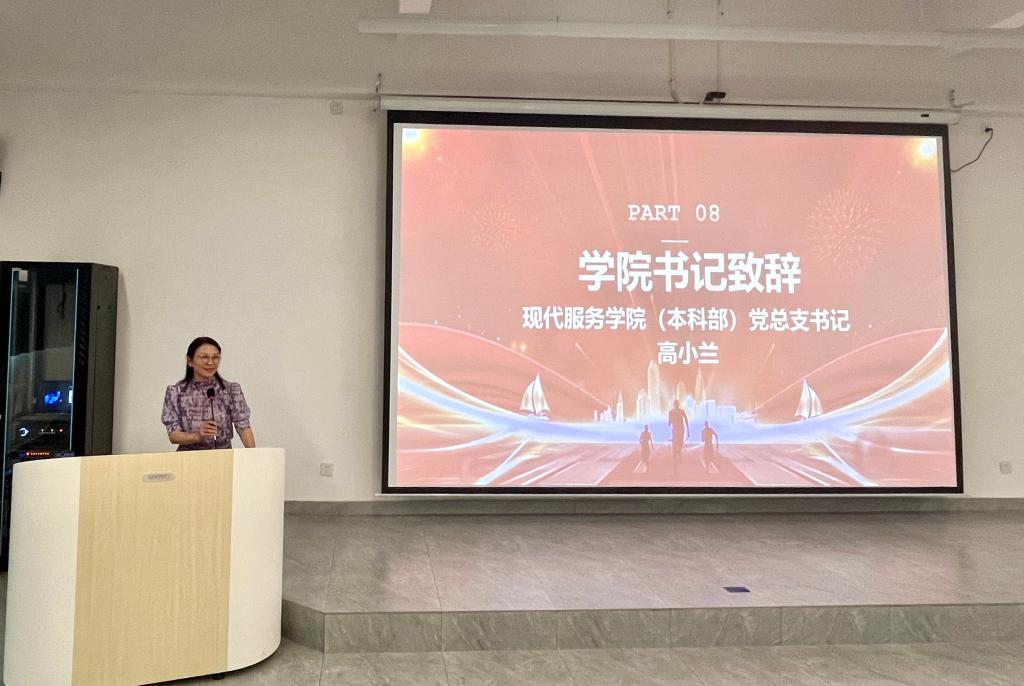 秋光为序,筑梦启航。9月15日下午,现代服务学院2025级新生入学教育暨军训动员大会在八里湖校区一教117阶梯教室举行。学院负责人、专业负责人、新生班主任、部分老生代表和全体新生参加了本次大会。